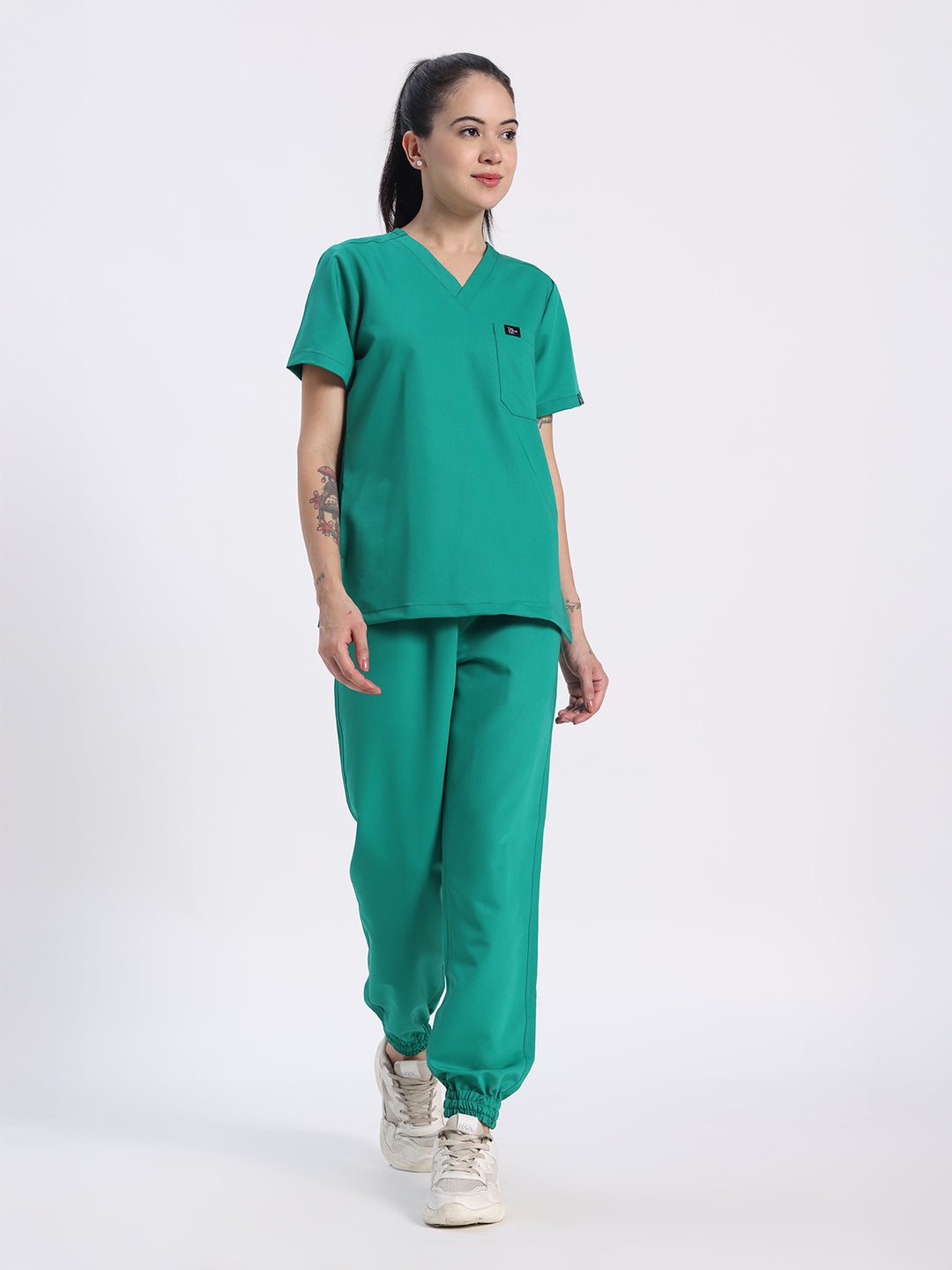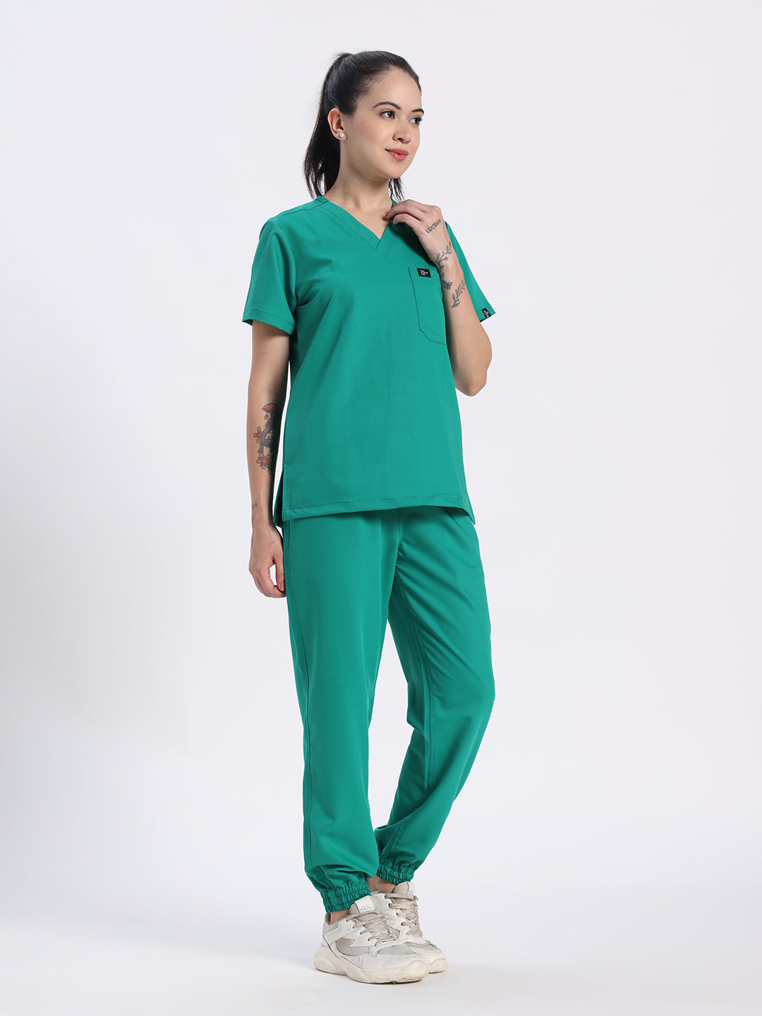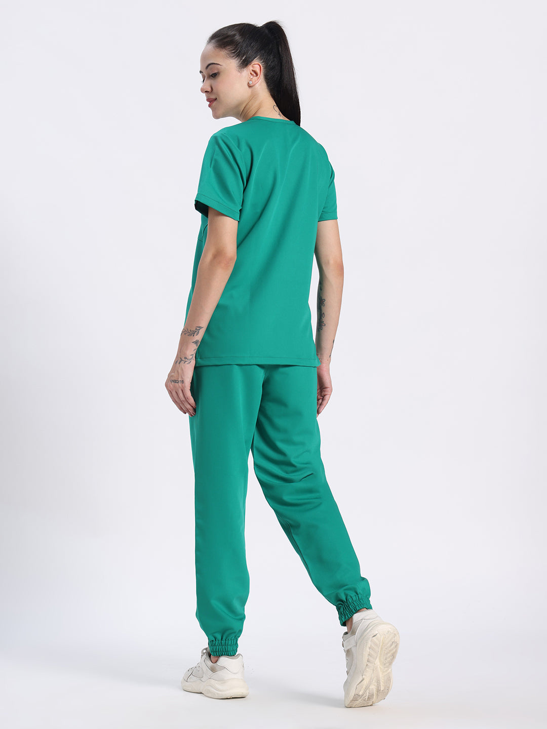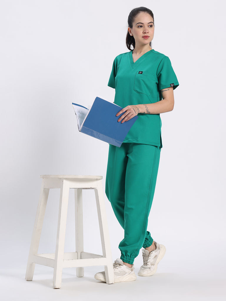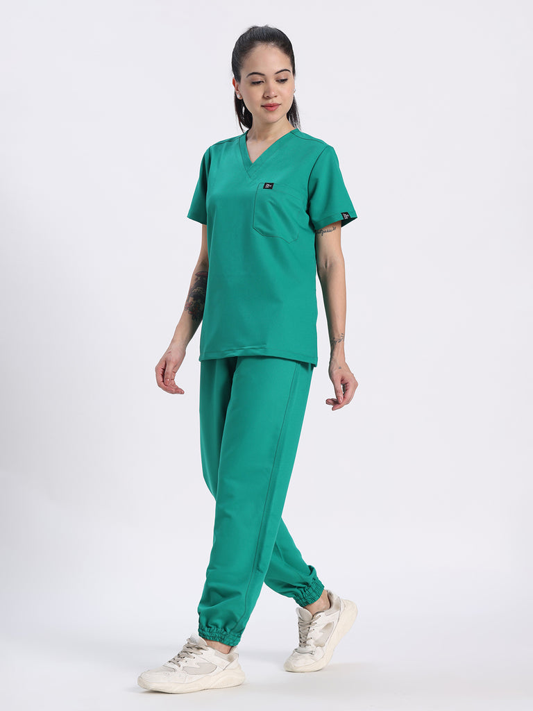 Stretchable (4Way) Female Sea Green V-Neck With Jogger Scrub Set