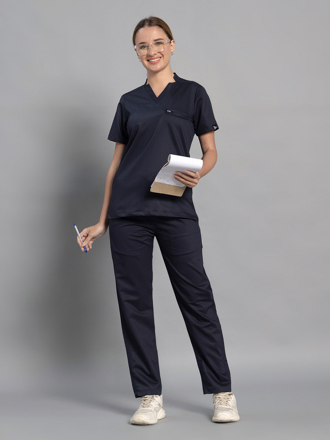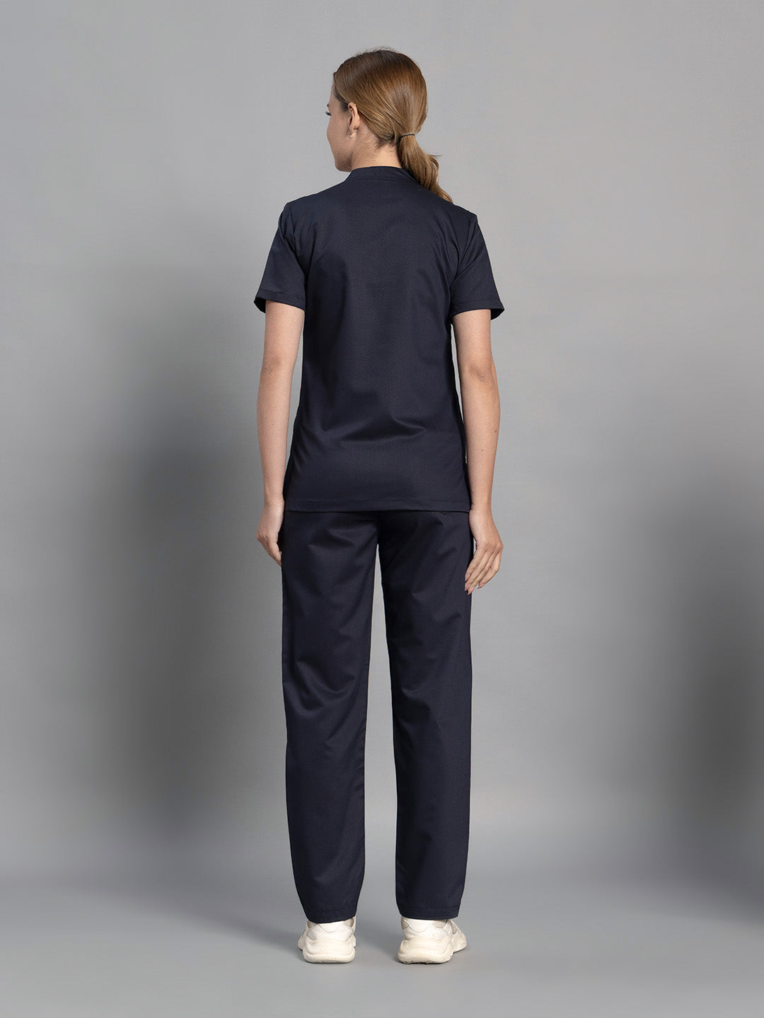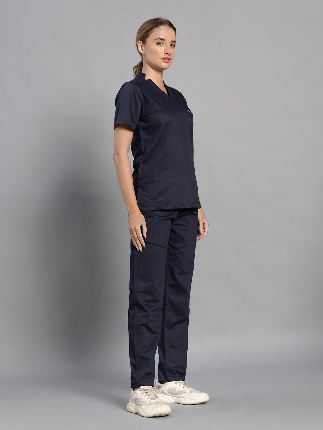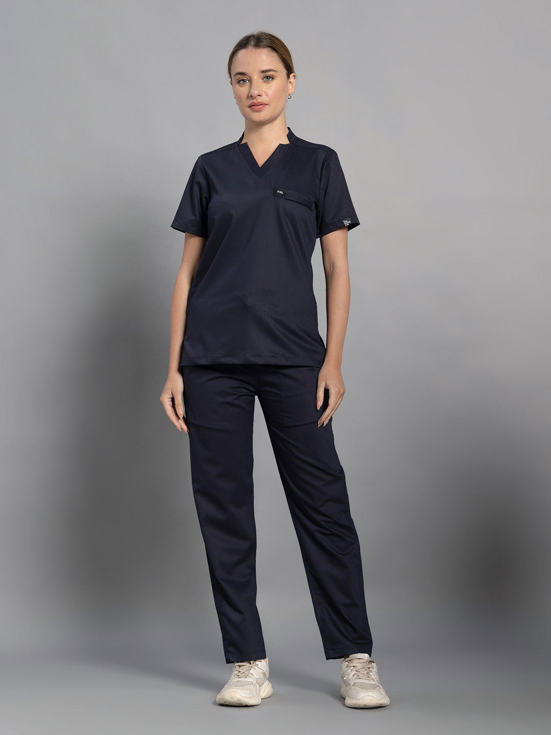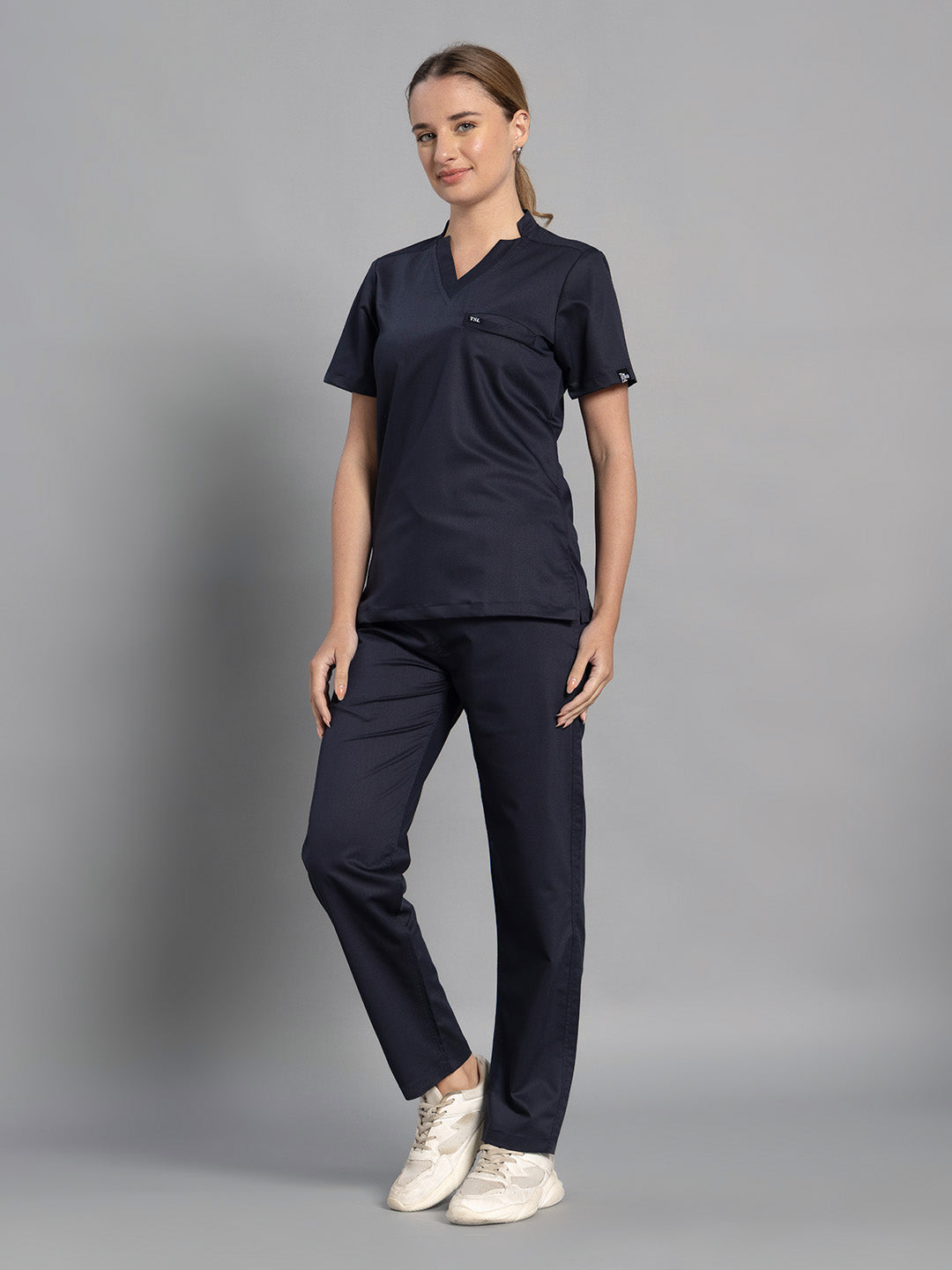 2 Way Elite Women Navy Blue Star V Neck Top With Straight Pants Scrub